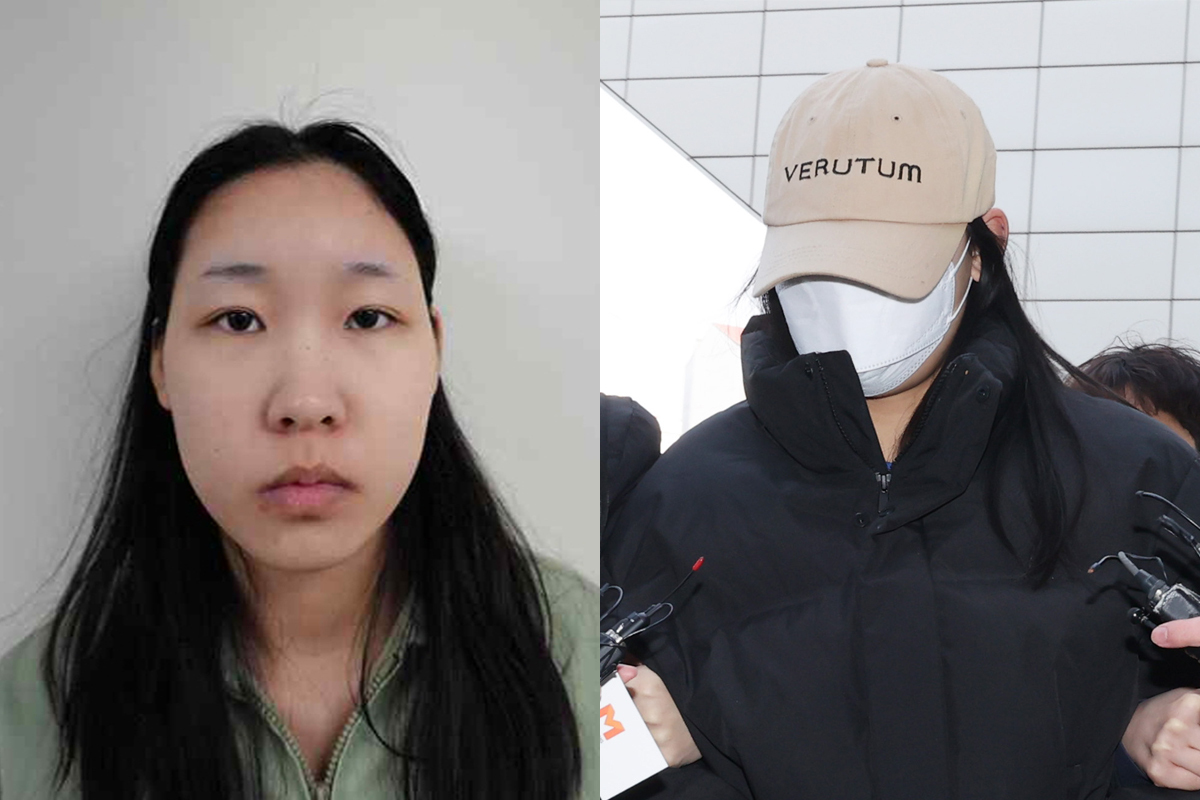 서울 강북구 수유동 모텔에서 남성 2명을 숨지게 한 혐의를 받는 김소영 머그샷. 오른쪽은 김씨가 지난 2월12일 서울북부지법에서 영장실질심사를 받기 위해 출석하고 있다. 서울북부지검 제공·연합뉴스