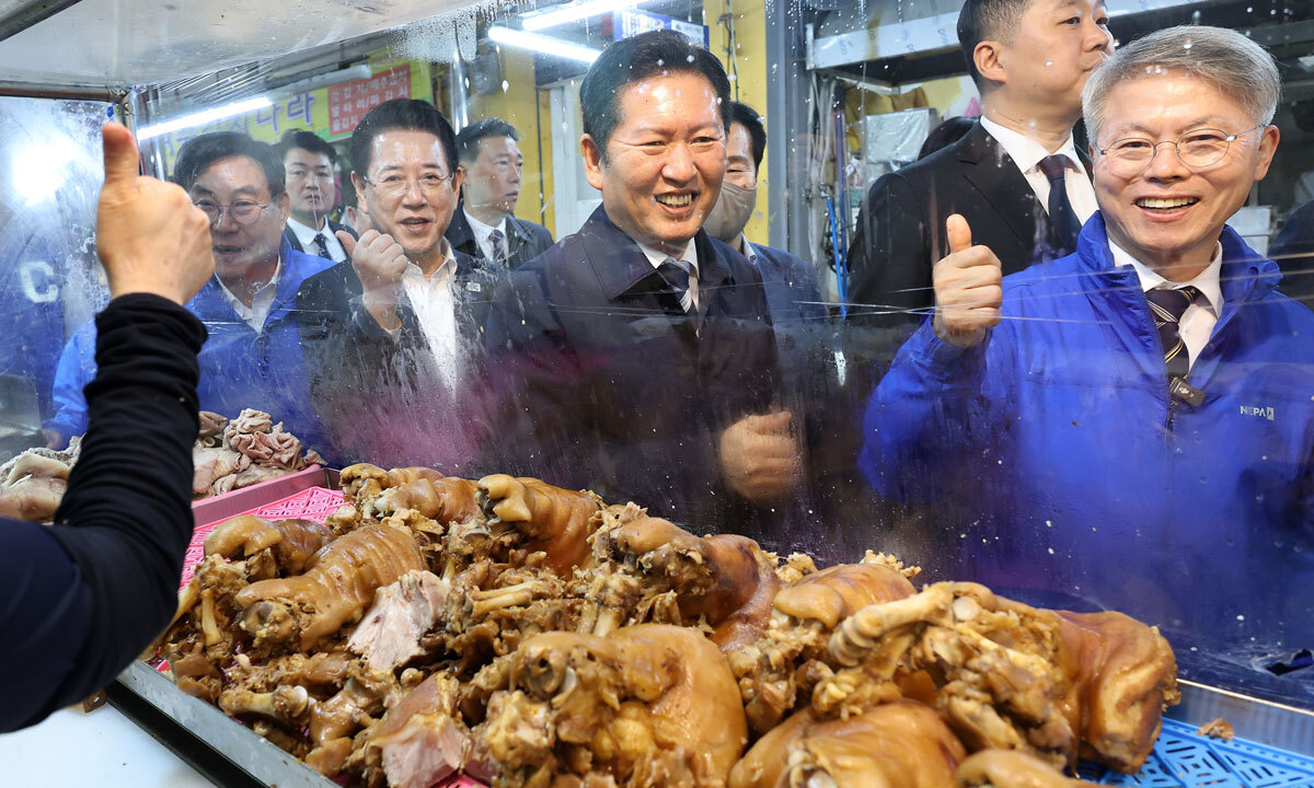 이후 정 대표는 여수와 광주 전통시장을 찾아 식료품을 사고 시민들과 사진을 찍는 등 적극적인 소통 행보를 이어갔다. 정 대표는 여수 서시장에서 “민주당을 사랑해주시는 분들께는 더 열심히 하고, 또 아직 따뜻한 시선 보내지 않는 데에도 더 지극정성으로 국민 곁으로 가야겠다”고 했다. 정 대표는 10일에는 전남 담양에서 전통시장을 찾고 현장 최고위를 개최한다.