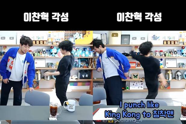이찬혁은 당시 행동에 대해 “어릴 때부터 하던 나만의 기술”이라며 “이름도 있다. ‘아이 펀치 라이크 킹콩 투 이수현’이다”라고 밝혔다. 이에 이수현은 “이름을 보면 알겠지만 원래 나에게만 쓰는 기술인데, 침착맨님이 영광스럽게 그걸 처음으로 받으신 것”이라고 덧붙여 좌중을 폭소케 했다.