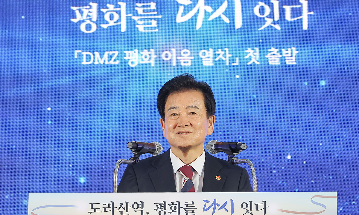정 장관은 “DMZ 평화이음 열차 재개는 국민들이 일상 속에서도 평화를 찾을 수 있는 작은 출발점”이라며 ”나들이 나온 여행객들이 도라산역에서 평화의 현장을 걷고 보고 느낄 때 평화는 거창한 담론이 아니라 우리 삶 속에 숨 쉬는 일상의 언어가 될 것”이라고 설명했다.