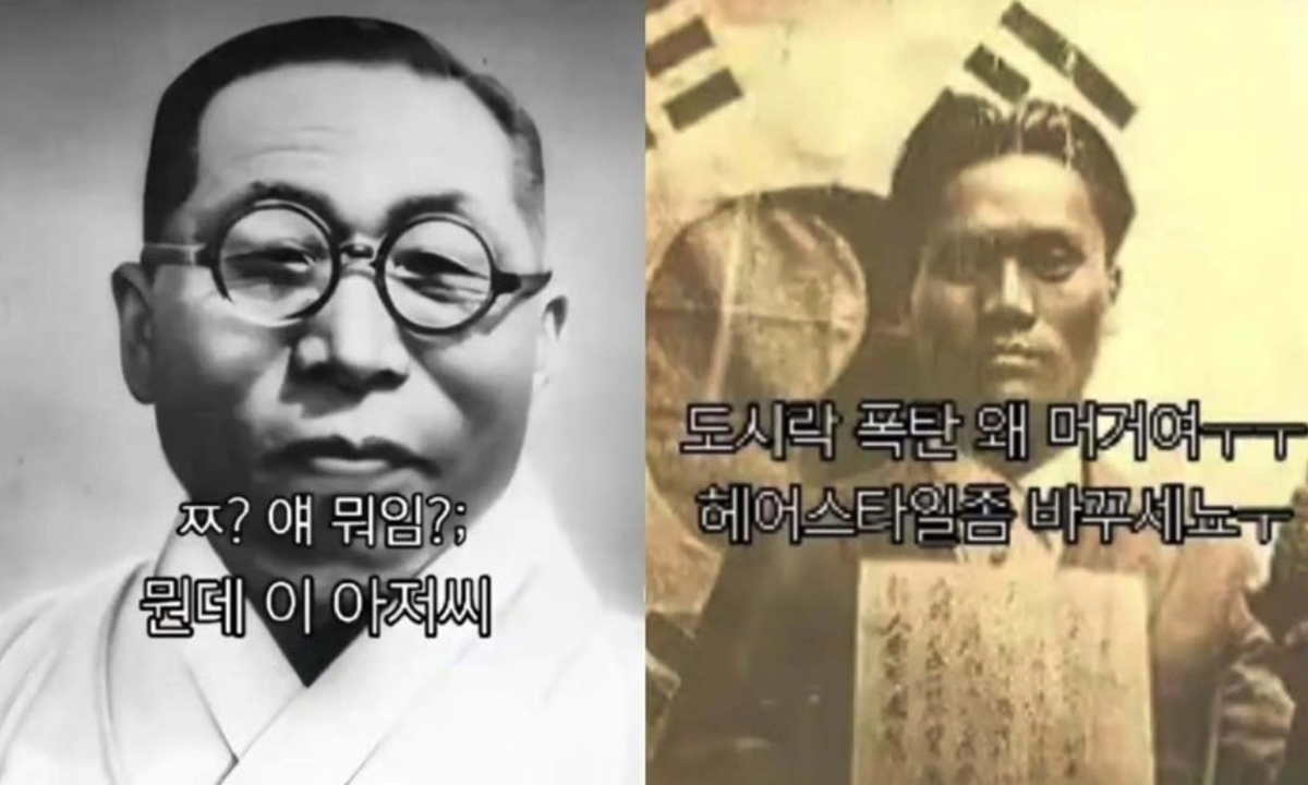 공개된 사례에는 김구 선생과 윤봉길 의사 사진 위에 “뭔데 이 아저씨”, “도시락 폭탄 왜 먹어요ㅜㅜ” 등의 문구를 합성한 이미지가 포함됐다.