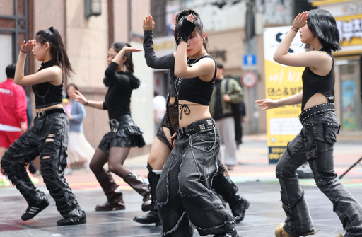 12일 대구 동성로 28아트스퀘어(옛 대구백화점 앞)에서 대구경북스트릿댄스협회 주최로 열린 ‘LMS 댄스 버스킹 in 동성로’에서 댄서들이 저마다의 실력을 선보이고 있다. 과거 대구시민의 ‘만남의 광장’ 역할을 했던 28아트스퀘어 일대 상권을 되살린다는 취지의 이날 행사에는 LMS댄스학원과 영천 M댄스아카데미 소속 청소년 및 청년 댄서 100여명이 참여했다.