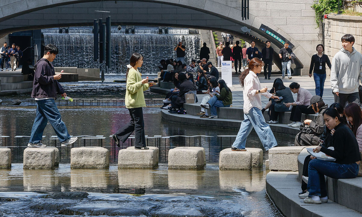 이날 많은 직장인들이 청계천을 찾아 맑은 날씨를 즐기며 점심식사를 즐겼고, 산책을 즐기는 외국인 관광객과 시민들로 청계천이 붐볐다.