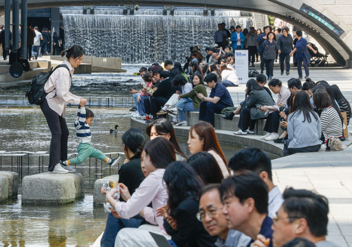 서울 낮 최고기온이 25도로 초여름 날씨를 보인 13일 서울 중구 청계천에서 시민 및 관광객들이 점심 휴식시간을 즐기고 있다.