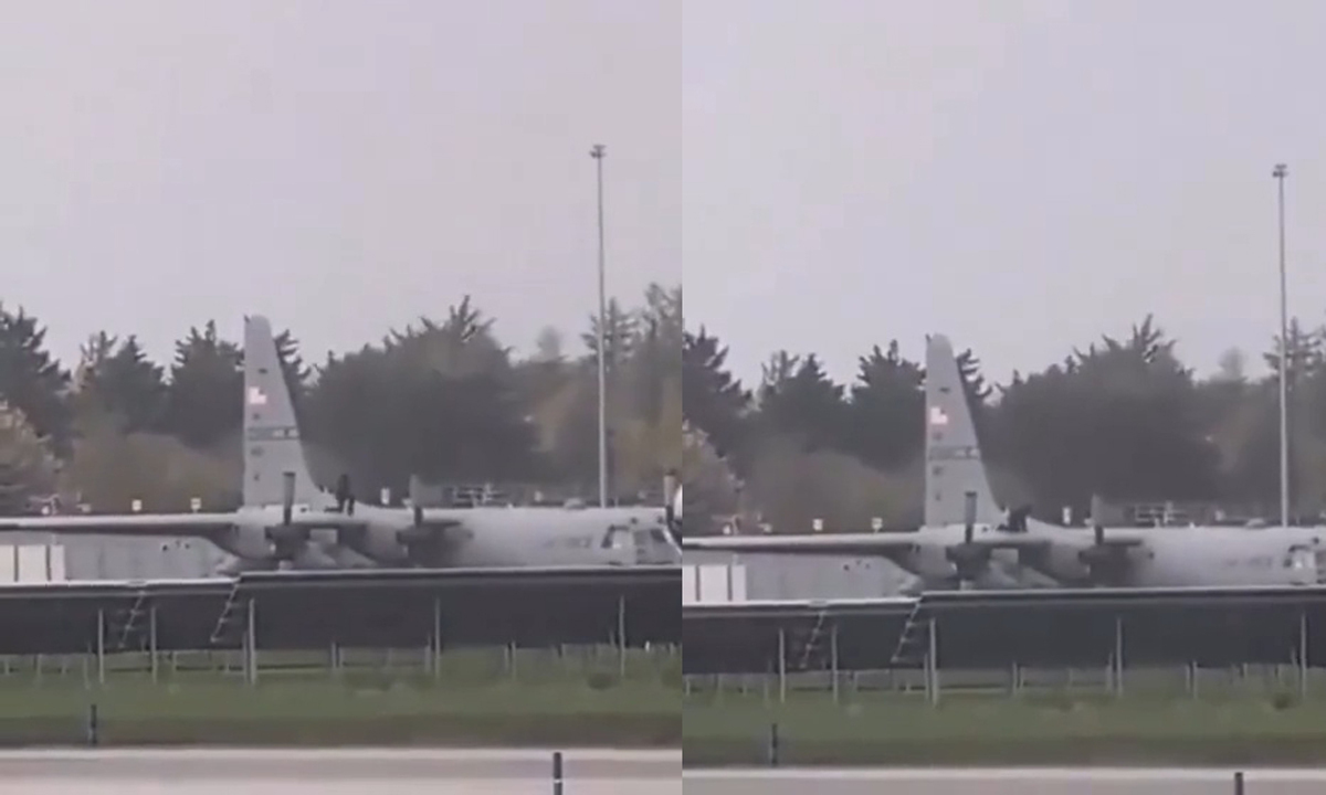 소셜미디어에 올라온 영상을 보면 검은 복장을 한 이 남성은 미 공군 C-130 허큘리스 수송기에 올라가 날개 부분을 미상의 물체로 계속해서 내리쳤다.