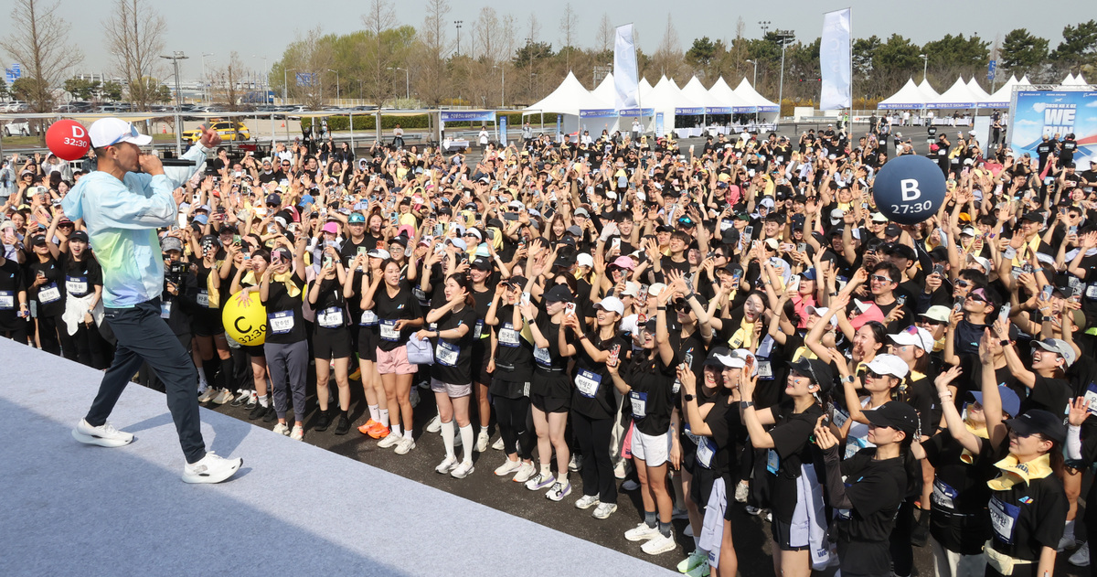 14일 인천 중구 BMW 드라이빙센터에서 열린 대한항공·아시아나항공 객실승무원 화합 기부 러닝 행사 ‘WE RUN’에서 참가자들이 힘차게 출발하고 있다.