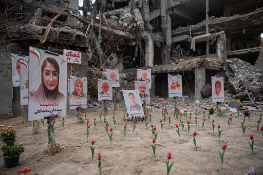 미국과 이스라엘의 공습으로 사망한 이란인들의 사진이 13일(현지시간) 이란 수도 테헤란의 한 주택 자리에 전시돼 있다. 미·이란 종전회담 ‘노딜’ 이후 미국이 호르무즈해협 역봉쇄에 나서며 ‘2주 휴전’이 진행 중임에도 양국의 긴장감은 최고조에 달한 상황이다.