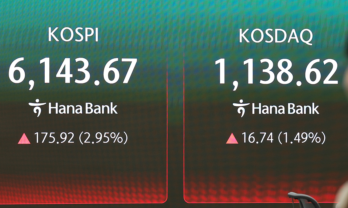 이날 오전 9시 18분 현재 코스피는 전장보다 185.55포인트(3.11%) 상승한 6,153.30에 거래되고 있다.
