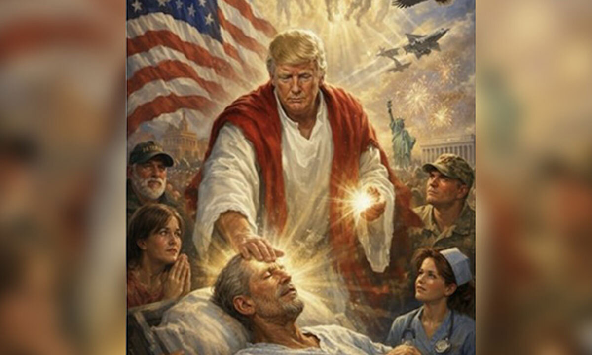 해당 이미지는 트럼프 대통령이 지난 12일 자신의 사회관계망서비스(SNS) 트루스소셜에 올린 것이다. 그림 속 트럼프 대통령은 흰옷을 입고 붉은 망토를 걸친 채 병든 누군가의 이마에 오른손을 올리고 있었으며, 주위에는 후광이 비치고 있었다. 주변에는 성조기·자유의 여신상·흰머리독수리 등 미국 상징물이 배치됐다. 이 게시물이 올라온 뒤 트럼프 대통령이 스스로를 예수에 빗댄 것 아니냐는 비판이 나왔고, 결국, 트럼프 대통령은 12시간 만에 게시물을 삭제했다. 트럼프 대통령이 자신의 SNS 게시물을 삭제한 것은 최근 버락 오바마 부부를 원숭이로 묘사했다 물의를 빚은 동영상 등 극히 일부뿐이다.