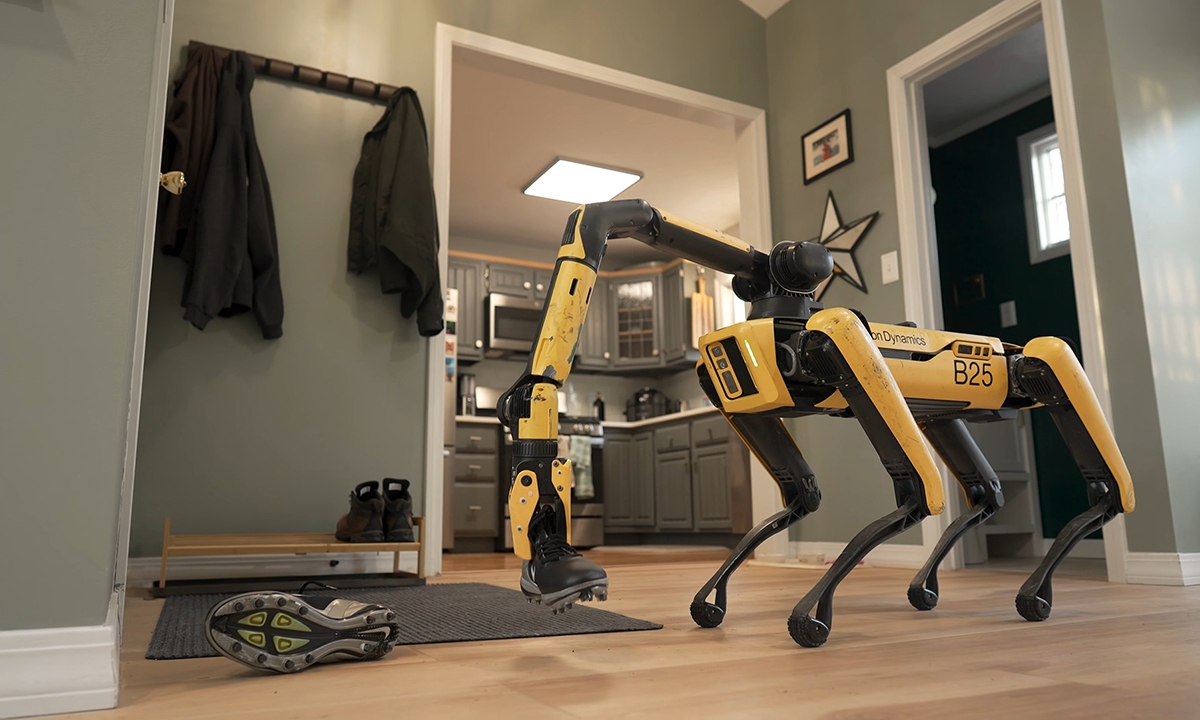 로봇 개 ‘스팟’이 칠판 앞으로 다가가 카메라와 구글의 인공지능(AI) ‘제미나이’를 활용해 적혀 있는 할 일 목록을 확인한다. 명령에 맞춰 현관 앞에 널브러진 신발을 집어 신발장에 정리하고, 거실에 있는 빈 캔을 집어 쓰레기통에 넣는다. 이어 바닥에 있는 옷과 양말을 빨래 바구니에 담고, 가구 아래 쥐덫의 상태도 꼼꼼히 살핀다.
