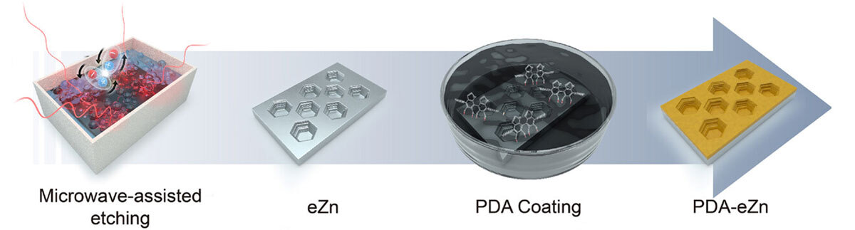 이에 윤 교수팀은 전자레인지 등의 작동에 활용되는 전자기파(마이크로파)를 이용해 아연 표면에 미세한 구멍 구조를 만들어 전류가 고르게 흐르도록 했다. 금속이 한쪽으로 뾰족하게 자라나는 것을 예방하기 위해서다.