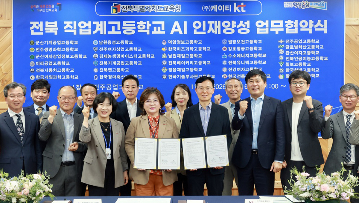 윤영임 전북도교육청 교육국장은 “KT의 AICE와 AI 실습 인프라를 직업계고 교육에 도입함으로써 전북형 AI 실무 인재 양성에 중요한 전환점이 될 것”이라며 “국가공인자격과 실무 역량을 동시에 갖춘 인재를 길러 지역 전략산업에 적극 대응할 방침”이라고 말했다.