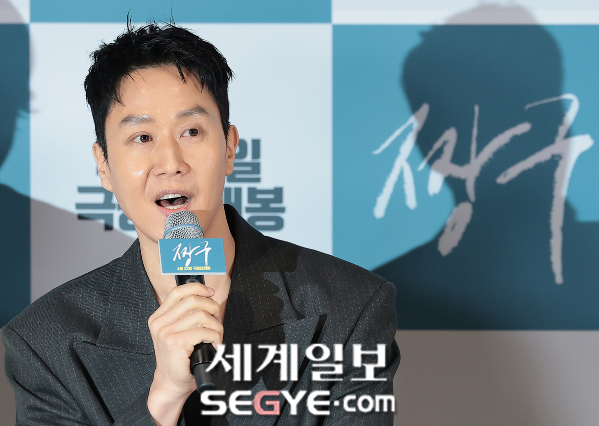 배우 정우가 16일 서울 용산구 CGV용산아이파크몰에서 열린 영화 '짱구'(감독 정우, 오성호) 언론시사회에 참석해 인사말을 하고 있다.