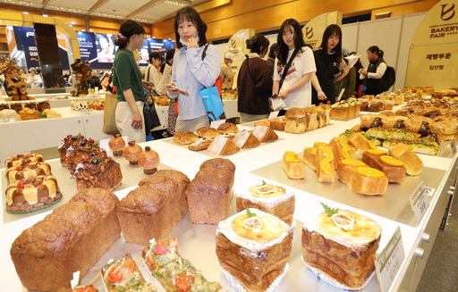 16일 서울 강남구 삼성동 코엑스에서 열린 ‘한국국제베이커리페어’를 찾은 관람객들이 경연대회에서 수상한 베이커리 제품을 살펴보고 있다. 농림축산식품부가 주최하는 이 행사에는 제과·제빵 기계, 포장, 베이커리 반조리품 등 산업 전반을 아우르는 100개 업체, 280개 부스가 참가하며 이날부터 19일까지 열린다.