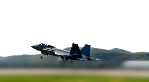 국내 기술로 독자 개발한 한국형 전투기 KF-21 ‘보라매’ 양산 1호기가 15일 경남 사천 제3훈련비행단에서 시험비행을 위해 이륙하고 있다. KF-21은 스텔스 기능을 갖추고 있으며 미국, 중국, 러시아 등에 이어 우리나라가 세계 8번째로 개발에 성공한 ‘4.5세대 이상’ 초음속 전투기다. 성능 확인 과정을 거쳐 9월쯤 공군에 실전 배치되면 본격적인 영공 수호 임무를 수행한다.
