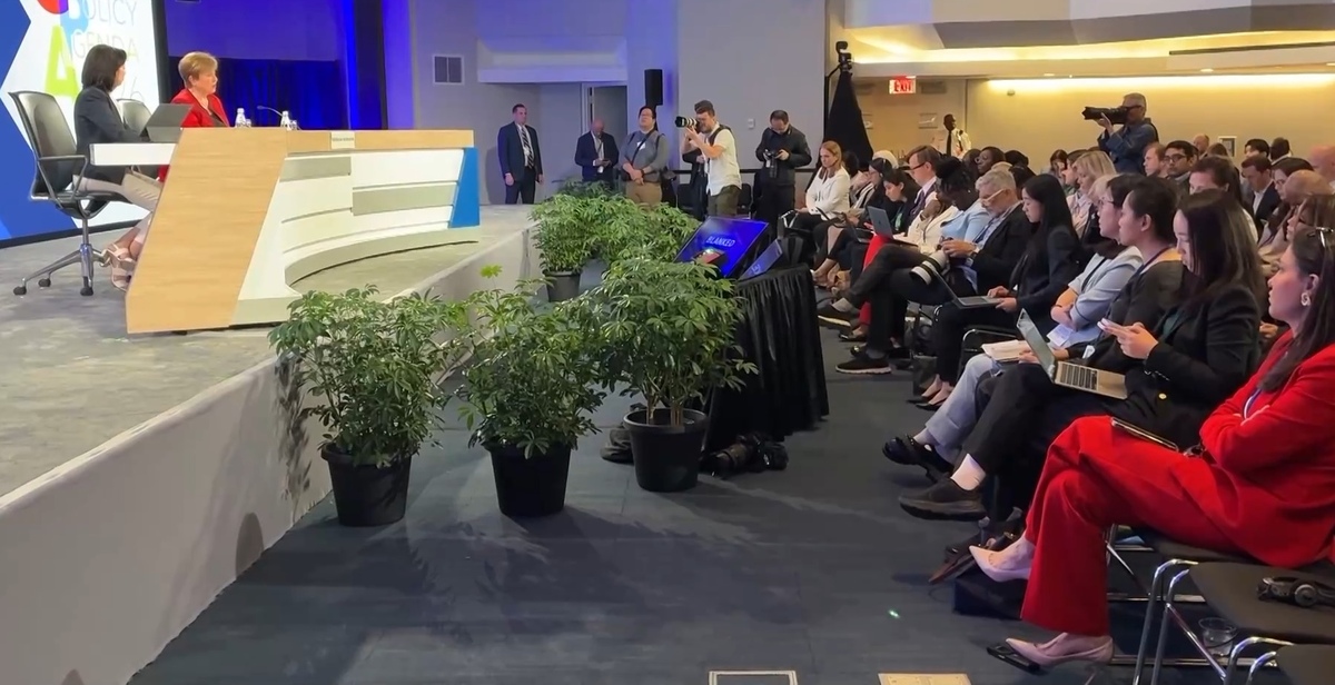 게오르기에바 총재는 이런 여파를 반영해 IMF가 최신 ‘세계경제전망’에서 2026년 글로벌 성장률 전망치를 하향 조정했다고 설명했다.