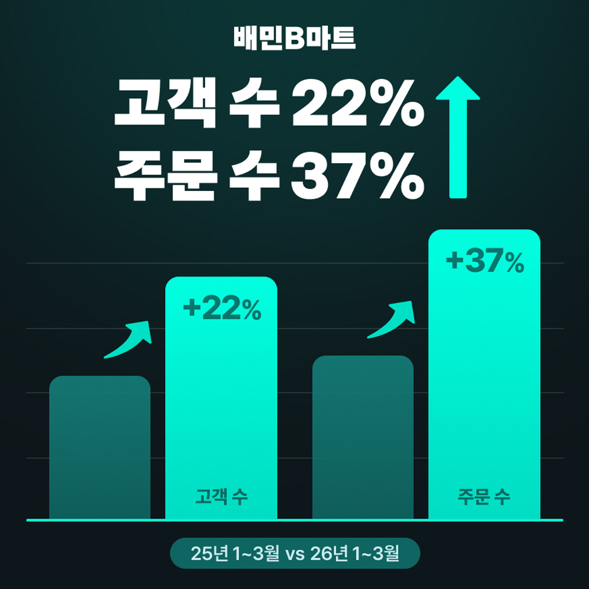 1분기 B마트 주문 수는 전년 동기 대비 37% 증가했다. 같은 기간 고객 수와 거래액도 각각 22%, 36% 늘었다. 이전 분기 대비로도 주문 수는 27%, 고객 수는 21% 증가했다.