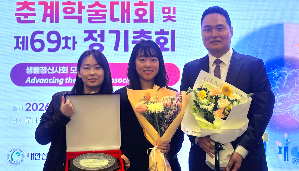 세계일보 탐사보도팀 배주현(왼쪽부터)·정세진·조병욱 기자가 지난 17일 서울 중구 소공동 롯데호텔에서 열린 한국의학바이오기자협회·대한신경정신의학회 ‘제3회 정신건강의학기자상’ 시상식에서 인공지능(AI) 매개 자살 시도 사례를 다룬 ‘AI, 위험과 위로 사이’ 보도로 단체부문 상을 받은 뒤 기념촬영을 하고 있다.