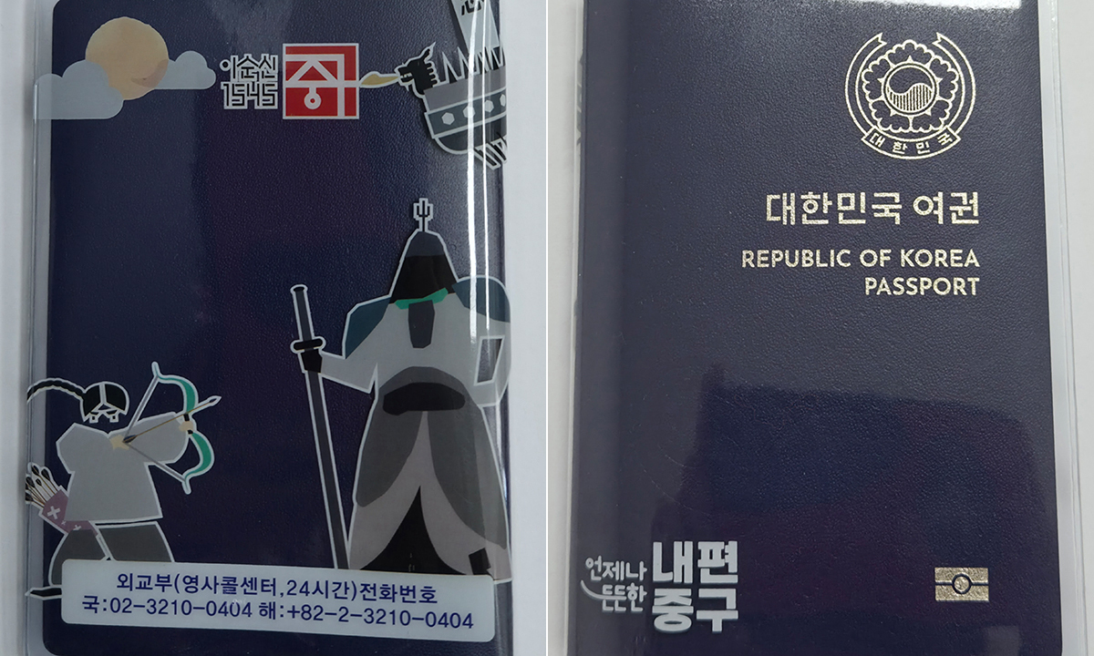 19일 구에 따르면 여권 케이스 뒷면에 구의 도시 브랜드 ‘이순신1545’와 외교부 영사콜센터 연락처, 앞면엔 구의 정책 브랜드 ‘내편중구’가 찍혀 있다. 여권을 쉽게 넣고 뺄 수 있게 상·하단이 트인 구조로 제작됐다. 카드, 항공권 등을 보관할 수 있는 포켓도 있다.