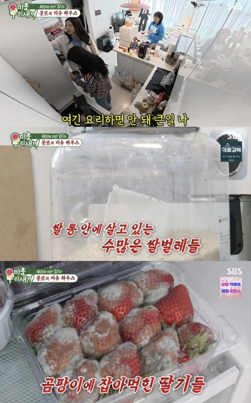 그러나 집 안 곳곳에서는 충격적인 위생 상태가 드러났다. 고구마 박스 속 고구마는 바짝 말라 있었고, 냉장고에는 곰팡이가 핀 딸기를 비롯해 썩은 과일과 채소, 족발 등이 가득했다.