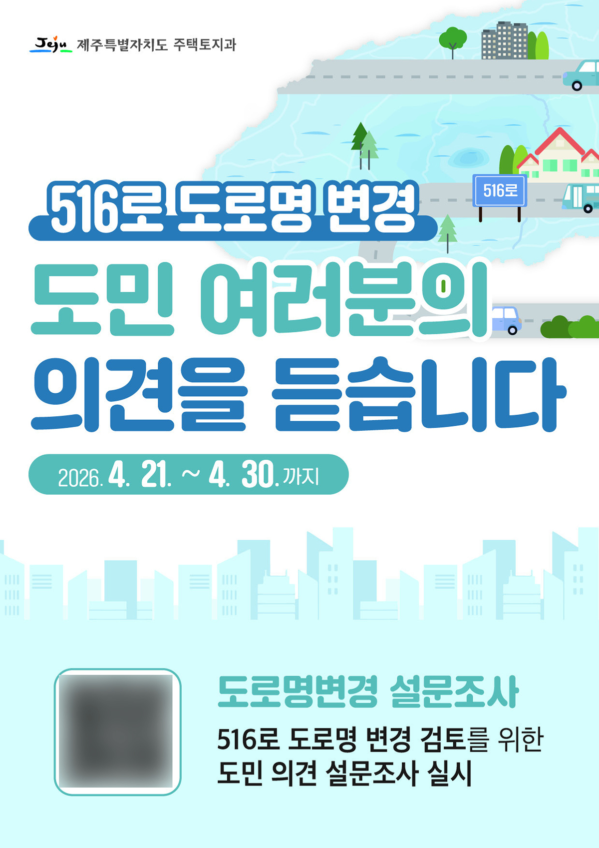 제주도는 도민 설문에 이어 5월에는 516로 주소 사용자를 대상으로 3주간 별도 의견 수렴을 진행한 뒤 향후 추진 방향을 결정할 방침이다.