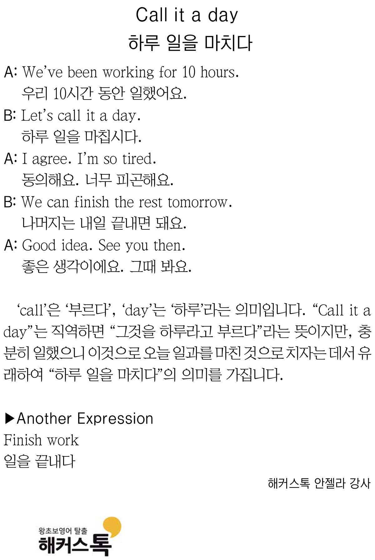 하루 일을 마치다