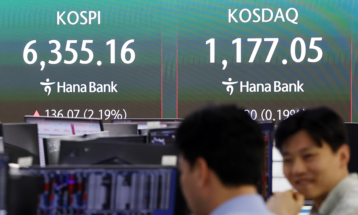 한국거래소에 따르면 코스피지수는 전장보다 83.45포인트(1.34%) 상승한 6302.54로 출발해 상승 폭을 키우고 있다. 한때 6355.39까지 올라 중동전쟁 발발 직전인 지난 2월27일 기록한 장중 사상 최고치(6347.41)를 약 2개월 만에 경신했다. 외국인과 기관의 강한 순매수 속에 개인이 순매도하며 차익을 실현하는 흐름이다.
