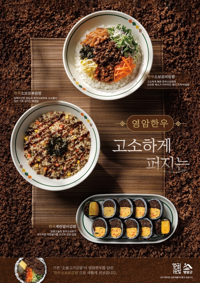김밥·분식 프랜차이즈 얌샘김밥이 21일, 전남 영암 한우를 활용한 ‘로코노미(Loconomy)’ 신메뉴 4종을 선보이며 지역 상생 행보를 이어간다.