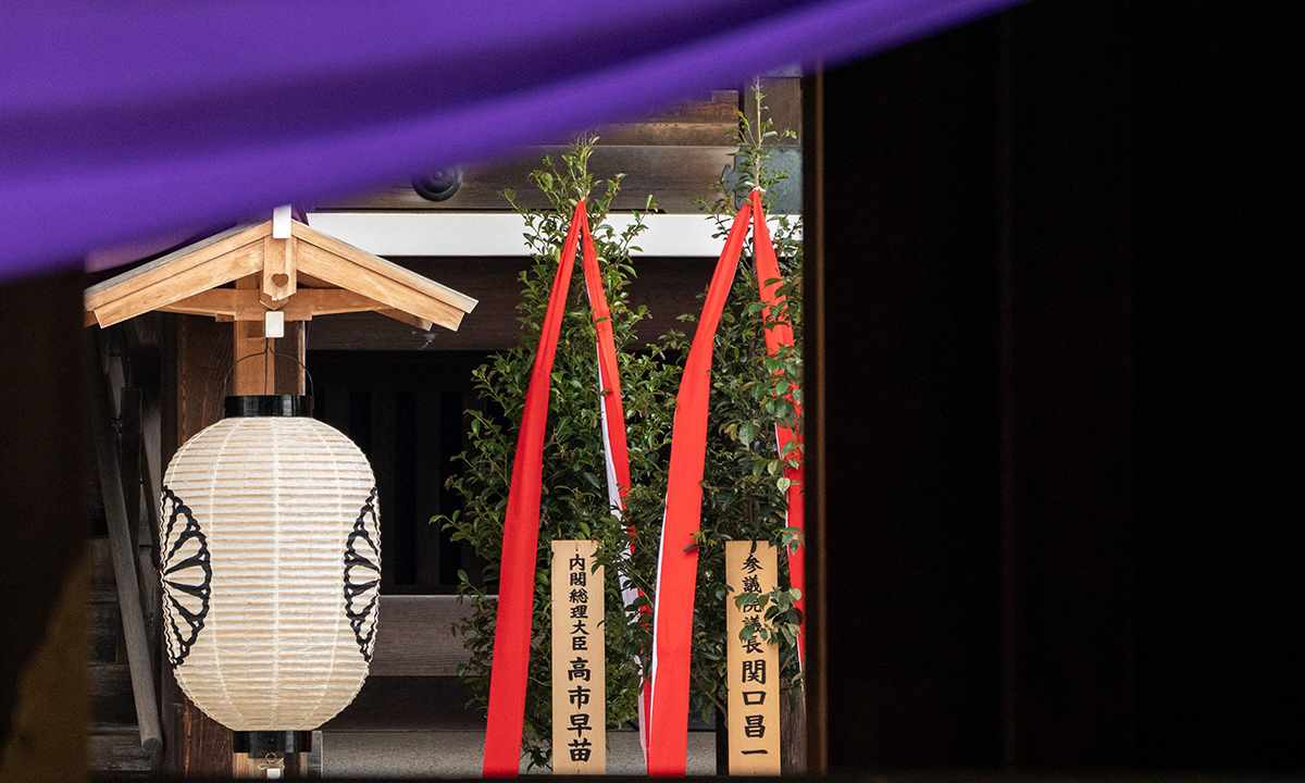 다카이치 총리는 이날 태평양전쟁 A급 전범이 합사된 도쿄 야스쿠니 신사에 공물을 봉납했다.