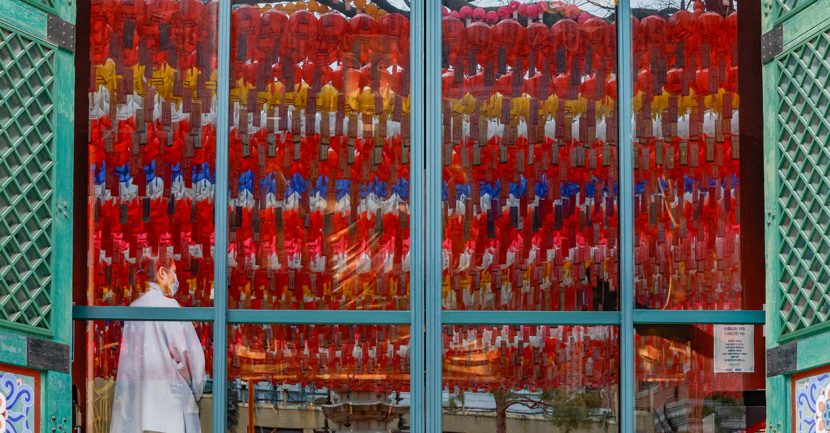 부처님 오신 날을 한 달여 앞둔 21일 서울 종로구 조계사에 형형색색의 연등이 달린 가운데 많은 신도들과 관광객들이 연등을 구경하기 위해 방문했다.
