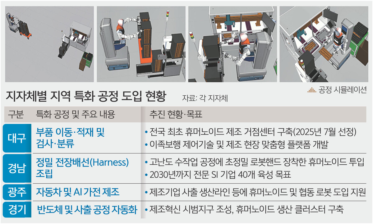 전국 지방자치단체들이 지역 특화 제조 공정에 산업용 휴머노이드(인간형) 로봇을 접목하기 위한 행보에 속도를 내고 있다. 급격한 인력 감소와 고위험 작업 환경 문제를 동시에 해결할 ‘게임 체인저’로 로봇을 낙점한 것이다. 단순 기술 시연 수준을 넘어 실제 공장 현장에 로봇을 투입하기 위한 테스트베드(시험용 장치) 구축과 국가 특화단지 유치에 사활을 걸고 있다.