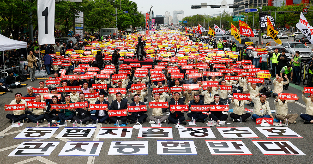 전국 농·축협 조합장과 농민 2만여명이 여의도에서 정부의 농협법 개정 추진에 반대하는 결의대회를 열었다. 외부 감사기구 설치 등의 내용을 담은 농협법 개정안이 농협의 자율성을 훼손할 수 있다는 이유에서다.