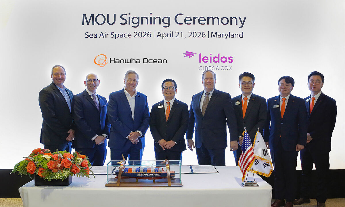 한화오션은 21일(현지시각) 미국 메릴랜드에서 열리고 있는 SAS 2026(Sea-Air-Space 2026) 현장에서 레이도스 깁스 앤 콕스(Leidos Gibbs & Cox)와 ‘미국 및 동맹국 해군 함정 건조 역량 강화를 위한 업무협약을 체결했다고 22일 밝혔다.