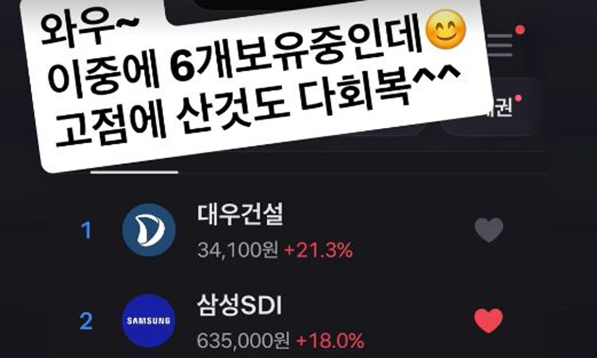 그는 "고점에 산 것도 다 회복"이라며 기쁜 마음을 드러냈다.