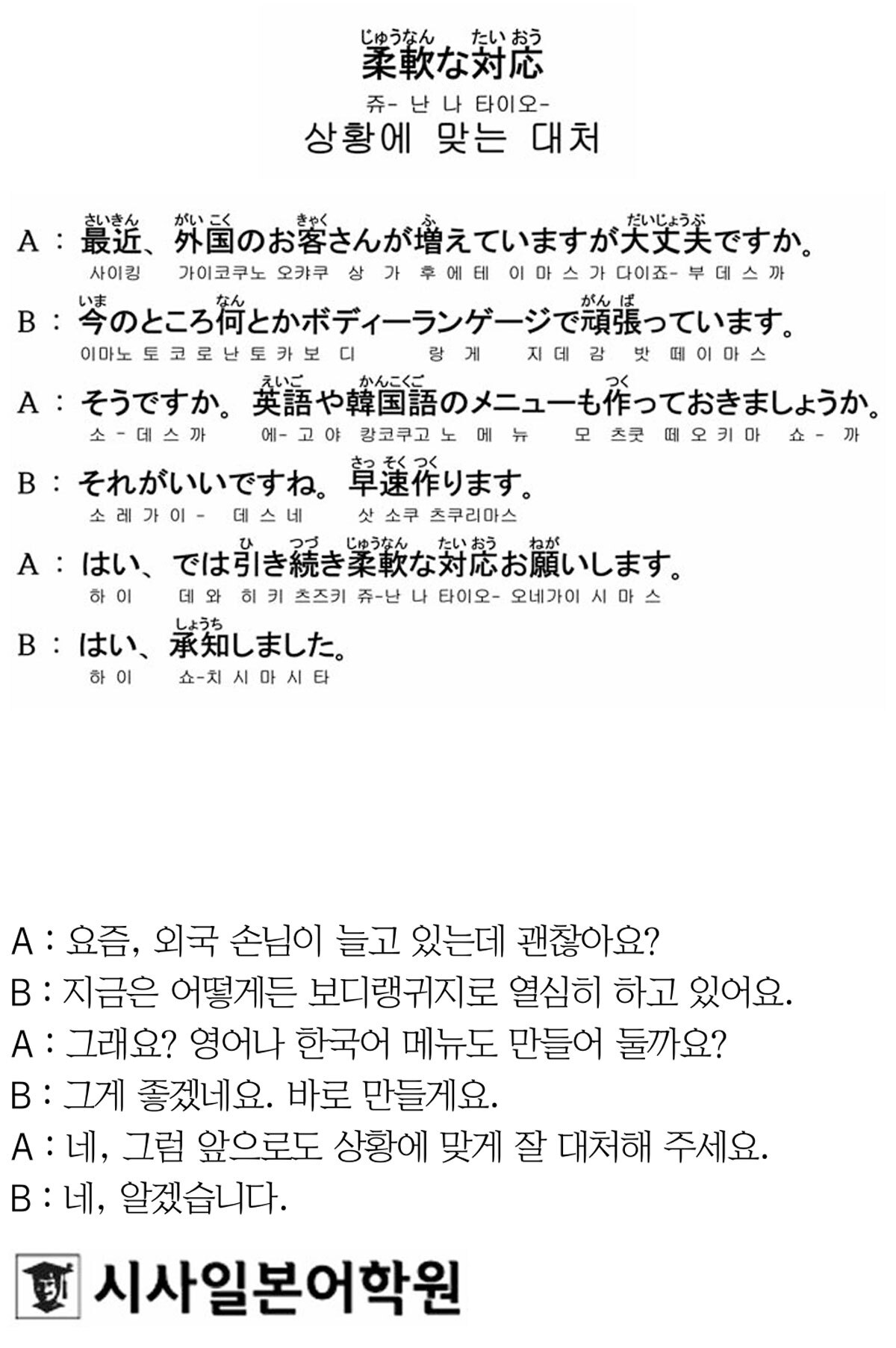 [시사일본어학원의 초단기 일본어 회화] 상황에 맞는 대처