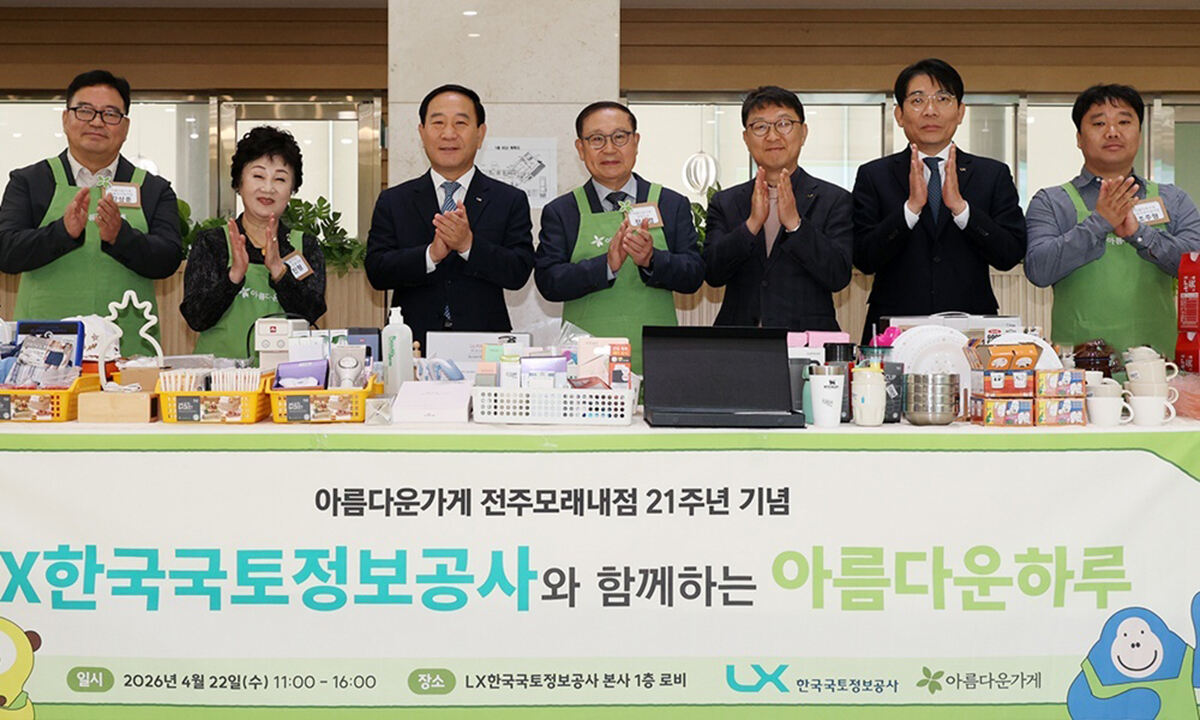LX는 22일 전주 본사 1층에서 (재)아름다운가게와 함께 나눔 바자회 ‘아름다운 하루’를 개최했다. 이번 행사는 기후 위기 대응과 나눔문화 확산을 위해 마련된 것으로, 아름다운가게 전북본부 전주모래내점이 참여했다.