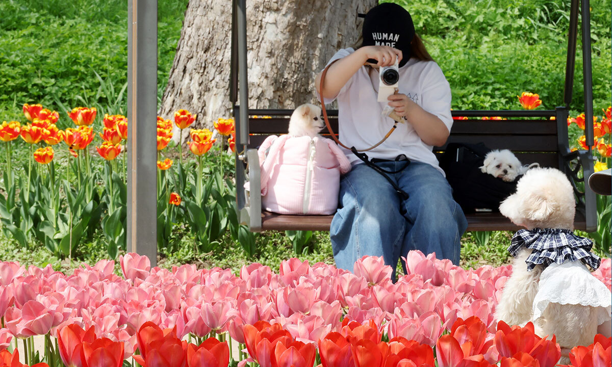 초여름 날씨를 보인 오후 서울 성동구 중랑천 용비쉼터공원에 형형색색 튤립이 활짝 피었습니다. 사진은 찰나의 기록입니다. 가족과 같은 반려견의 시간은 인간의 시간보다 빠르게 흐릅니다. 반려견과의 하루하루는 평범하지만 소중한 일상입니다. 반려견이 우리 곁을 떠나고 세월이 지나고 나면 그 평범했던 산책과 봄 꽃구경 순간은 다시는 못 올 그리운 풍경이 됩니다. 반려견의 가장 이쁜 모습을 카메라에 담으려는 애견인의 노력에 사랑이 보입니다. 반려견의 작은 습관, 꼬리를 흔드는 귀여운 움직임, 나를 바라보는 애정이 담긴 눈빛을 놓치지 않고 포착합니다. 이들의 아름다운 순간이 영원으로 남길 바랍니다.