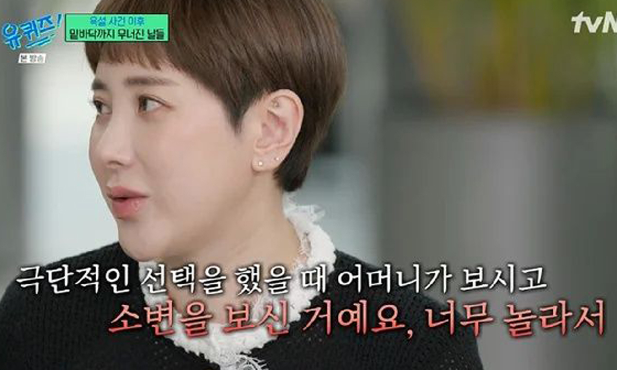 22일 방송된 tVN '유 퀴즈 온 더 블럭'에는 서인영이 출연했다. 이날 서인영은 논란이 됐던 욕설 사건을 회상하며 "당시 극단적인 선택을 몇 번 하기도 했다. '내가 죽어야 끝나겠구나' 싶어서"라고 말했다.