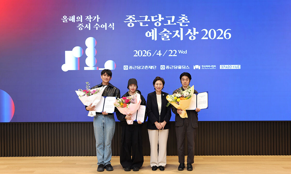 종근당고촌재단은 22일 서울 충정로 종근당 본사에서 김명찬·박그림·염지희 등 3인을 올해의 작가로 선정하고 ‘2026 종근당고촌 예술지상 올해의 작가 증서 수여식’을 가졌다고 23일 밝혔다.
