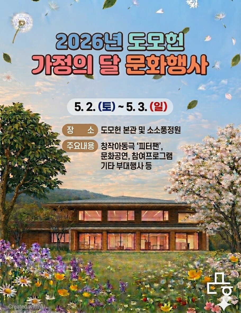 시는 도모헌 50만명 방문을 자축하고, 5월 가정의 달을 맞아 다음달 2~3일 창작 아동극 ‘피터팬’ 및 마술·퓨전국악 공연, 가정의달 콘서트, 대형 캔버스 월 퍼포먼스, 체험부스 운영, 소소풍 정원 프로그램, 포토존 등 온 가족이 함께 즐길 수 있는 다채로운 문화행사를 개최한다.