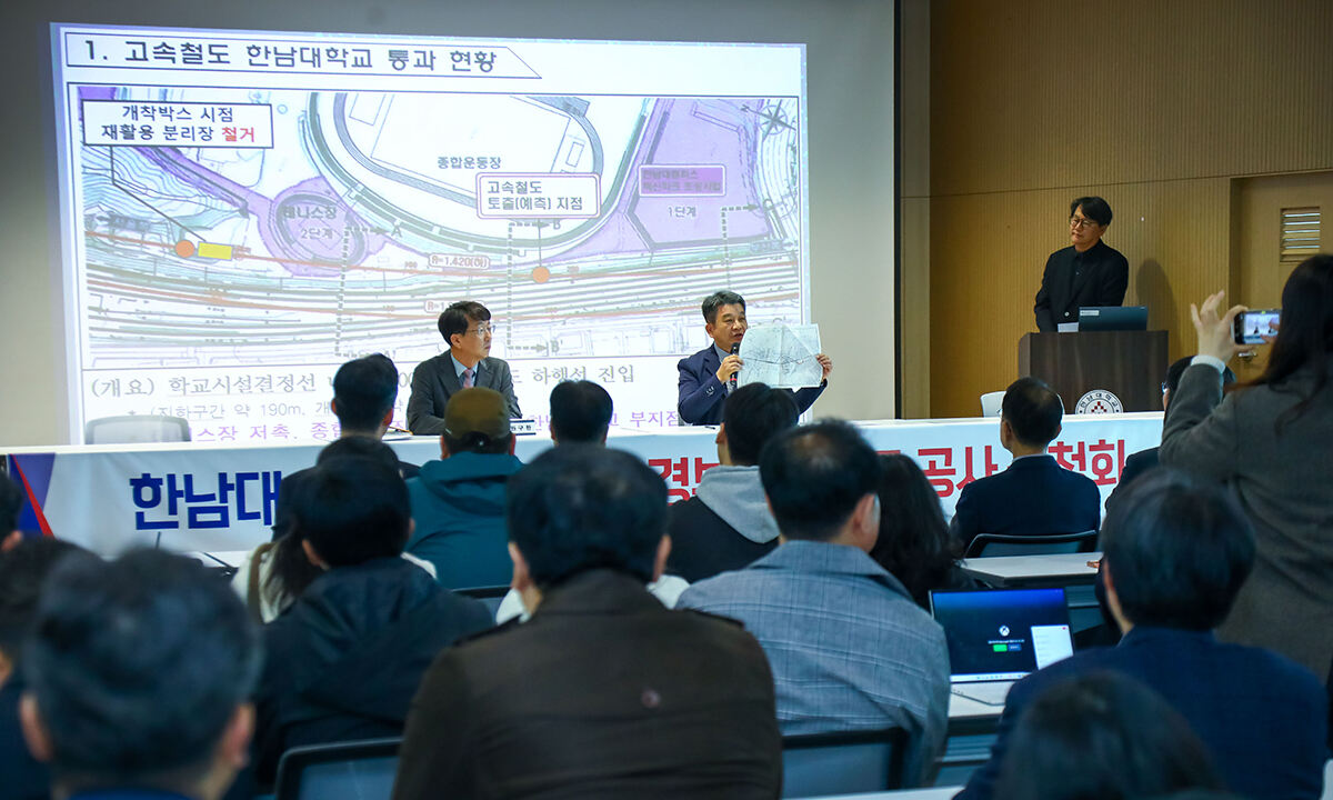 한남대는 “안전성 개선을 위한 사업이 오히려 캠퍼스 학생 교육시설 붕괴 및 지반 침하 등 안전 문제를 불러일으킬 수 있다”며 “현재 한남대를 관통하는 노선은 과거 농수로와 미나리밭이 있던 습지대로 기존 경부고속철도 구축 당시 성토해 쌓아 올린 연약지반”이라고 노선 재검토를 강력 요구했다.