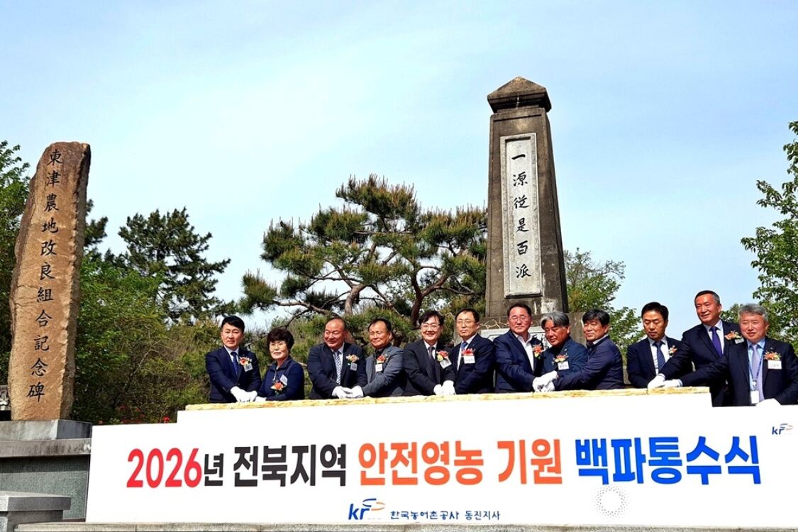 도는 23일 정읍시 태인면 낙양관리소에서 ‘2026년 안전영농기원 통수식(백파제)’을 개최했다. 이날 행사에는 김종훈 경제부지사를 비롯해 한국농어촌공사 관계자와 농업인단체 등 100여명이 참석해 풍년 농사와 무사고 영농을 기원했다.