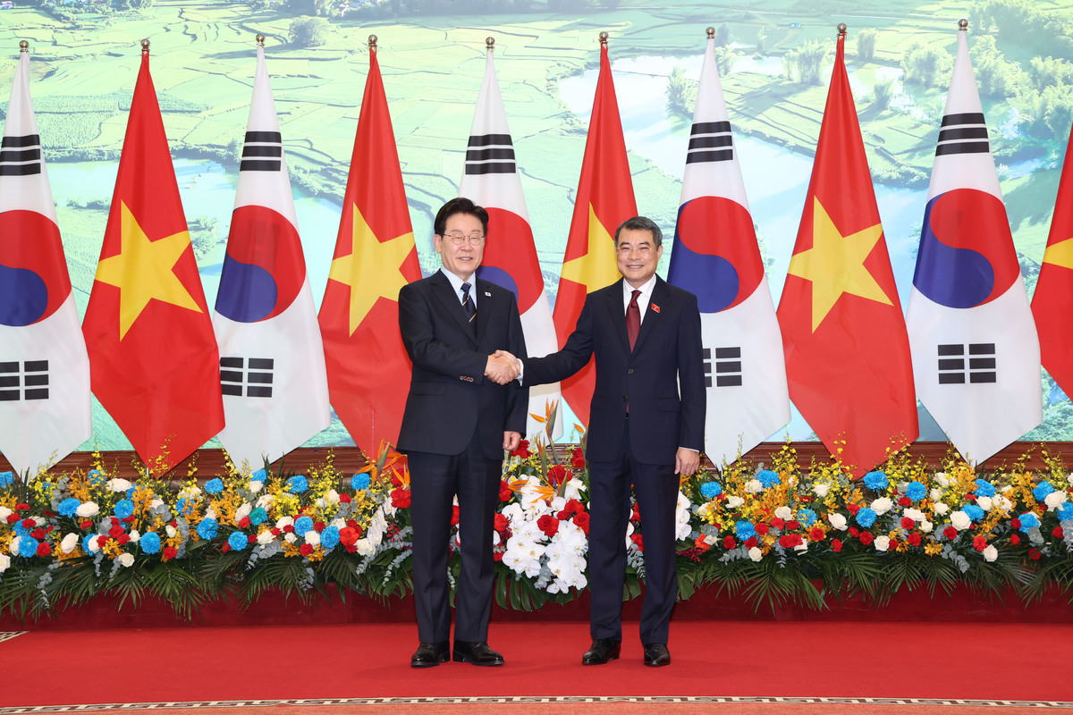 베트남을 국빈 방문중인 이재명 대통령은 23일 베트남 국가 서열 2위 레 밍 흥 총리과 면담을 가졌다.