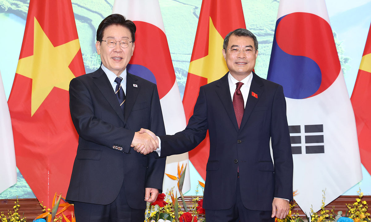 이 대통령은 이어 베트남 국회를 방문해 쩐타인먼 국회의장과도 면담하고 오찬을 함께했다. 이 대통령은 면담에서 “한국과 베트남은 상호 3대 교역 파트너이고 한국은 베트남의 최대 투자 유치 국가”라며 “국가 발전과 제도 정비를 이끄는 베트남 국회가 양국 관계 발전을 일관되게 지원해 준 덕분에 이러한 성과를 낼 수 있었다”고 했다.