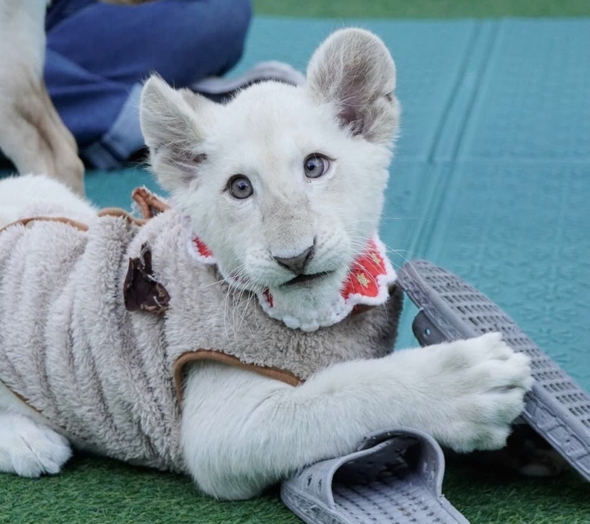 보문이는 육아에 서툰 어미 사자로부터 출생 후 보호받지 못하는 모습이 관찰되자 사육사 품에서 인공 포육됐다.