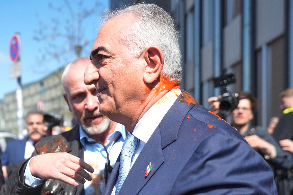 권력 복귀를 꿈꾸며 이란 정권 교체를 호소하고 있는 이란 팔레비 왕조의 마지막 왕세자 레자 팔레비가 독일 방문 도중 토마토소스를 뒤집어쓰는 봉변을 당했다.