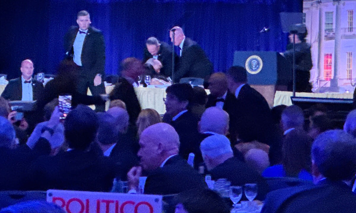무대 위에 마련된 헤드테이블에서 식사 중이던 트럼프 대통령과 배우자 멜라니아 여사, J D 밴스 부통령 등 주요 인사들은 테이블 아래로 몸을 숨긴 뒤 행사장 뒤로 피신했다.