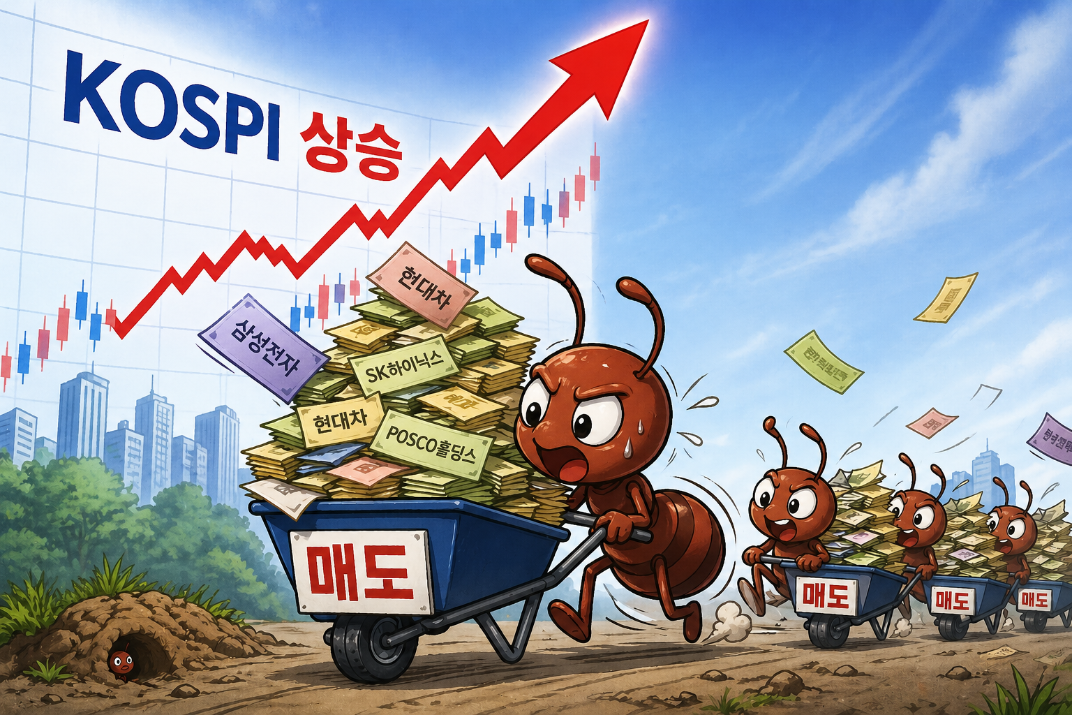 종목별로 보면 개인은 이달 삼성전자(6조5815억원)와 SK하이닉스(2조4981억원)를 가장 많이 팔아치웠다. 개인의 이달 순매도액 중 62%는 두 종목이 차지했다. 이어 두산에너빌리티(1조5401억원), 삼성SDI(8588억원), 현대로템(5360억원) 순이었다. 같은 기간 현대차는 5669억원, LS 일렉트릭은 5330억원을 순매수했다.