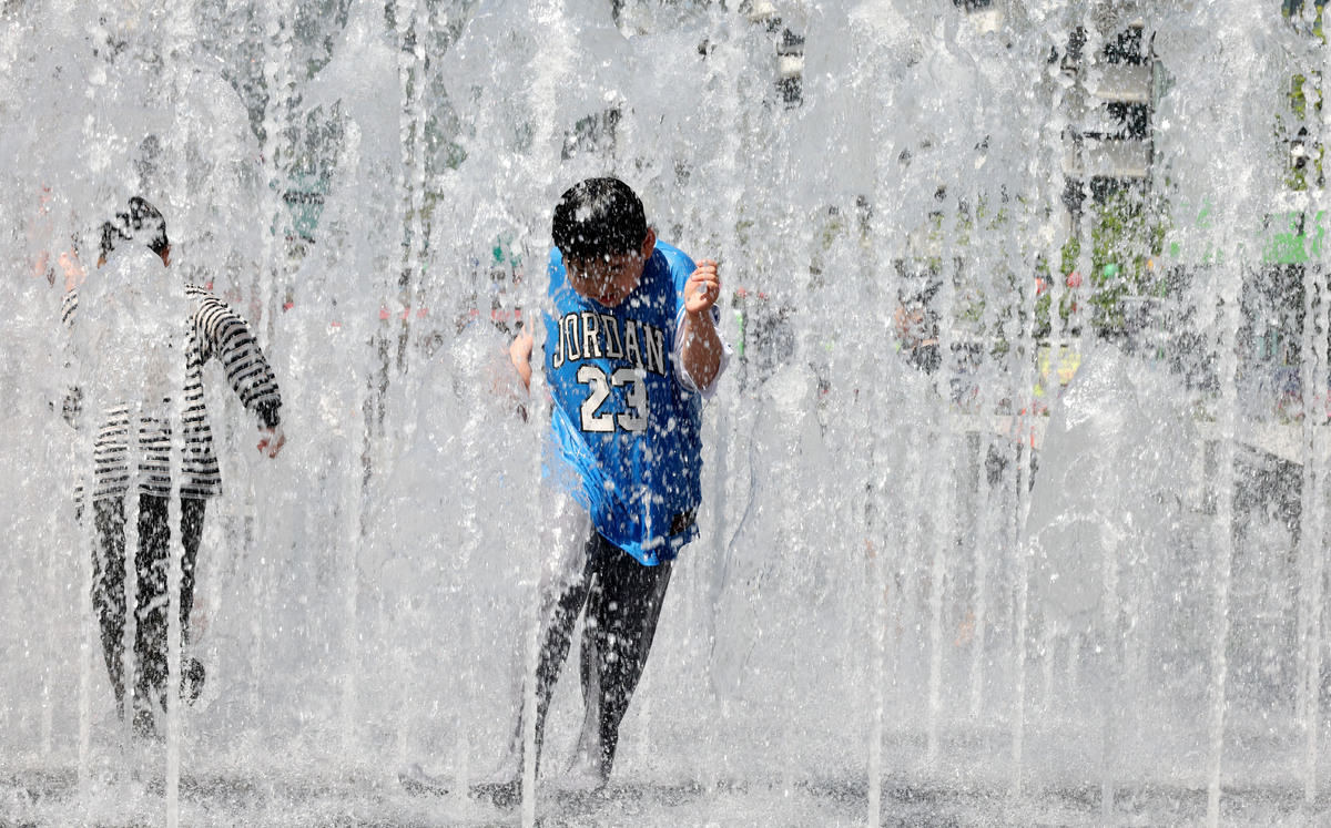 낮 최고기온이 25도까지 오르며 초여름 날씨를 보인 24일 오후 서울 종로구 광화문광장 분수대에서 어린이들이 물놀이를 하고 있다.
