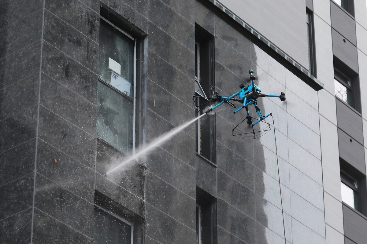주택 분야에서도 로봇 생태계를 본격화했다. 지난 10월 반포3주구 재건축 현장에서 ‘래미안 로봇 위크(RAEMIAN Robot Week 2025)’를 열고 ‘자율주행 지게차’와 ‘청소 로봇 살수용 드론’(사진) 등 총 5종을 선보였다.